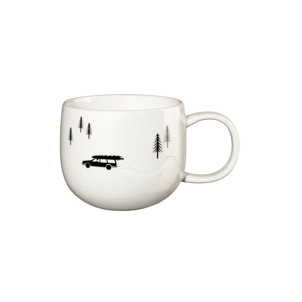 Der Henkelbecher „Skiing Xmas“ von ASA Selection bringt winterliche Leichtigkeit auf deinen Tisch. Das Motiv zeigt ein Auto mit Skiern auf dem Dach, unterwegs durch eine verschneite Landschaft mit feinen Tannen. Schlicht, nordisch und perfekt für die kalte Jahreszeit.