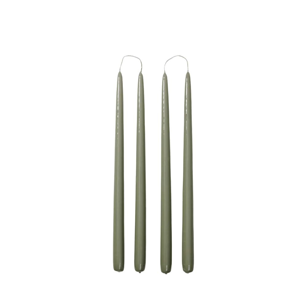 Das Smooth Glossy Kerzenset bringt ruhige Eleganz auf deinen Tisch. Die schlanken Stabkerzen in sanftem Olivgrün wirken modern und zurückhaltend zugleich.