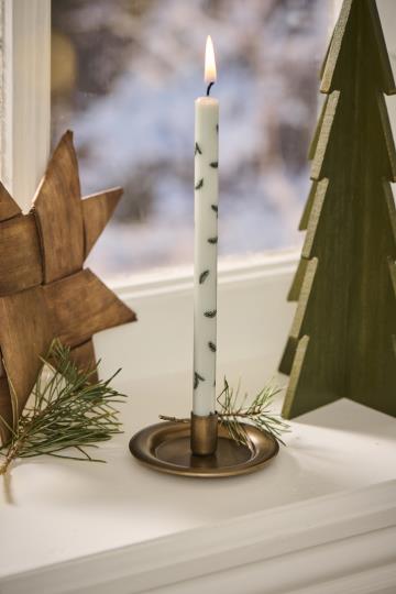 Ib Laursen Dünne hohe Kerze mit Tannenzweigen