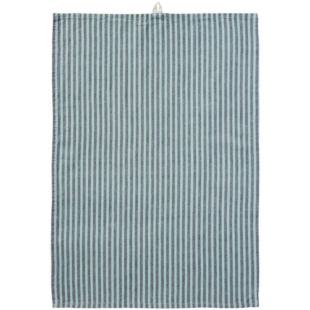 Dieses Geschirrtuch setzt mit seinen schmalen Streifen in Grau und Türkis einen klaren Farbakzent. Es trocknet gut und fühlt sich wertig an. Du hängst es über die Schlaufe auf und hast es beim Kochen schnell griffbereit.
