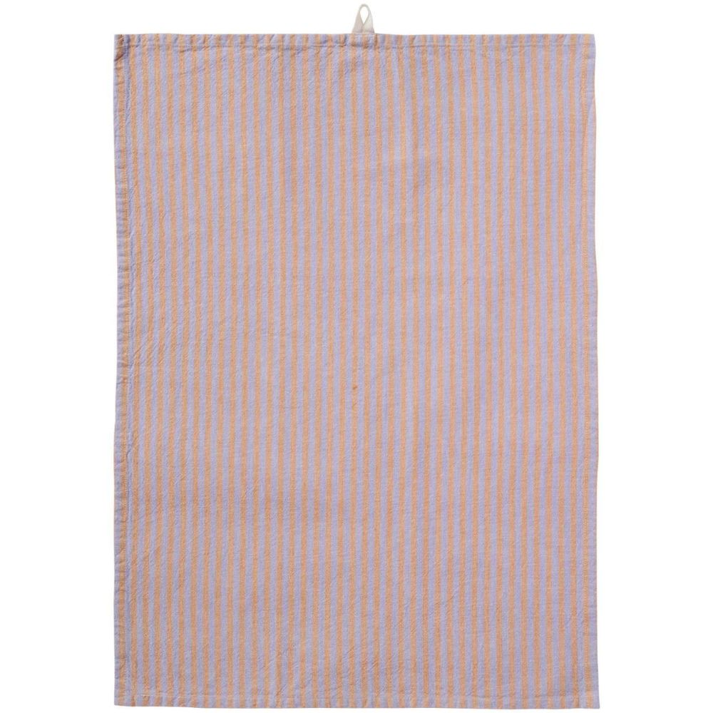 Dieses Geschirrtuch setzt einen klaren Akzent in deiner Küche. Die feinen Streifen in Lila und Rostbraun wirken modern und warm. Das Tuch trocknet gut und fühlt sich angenehm an. Du hängst es an die Schlaufe und hast es schnell zur Hand.