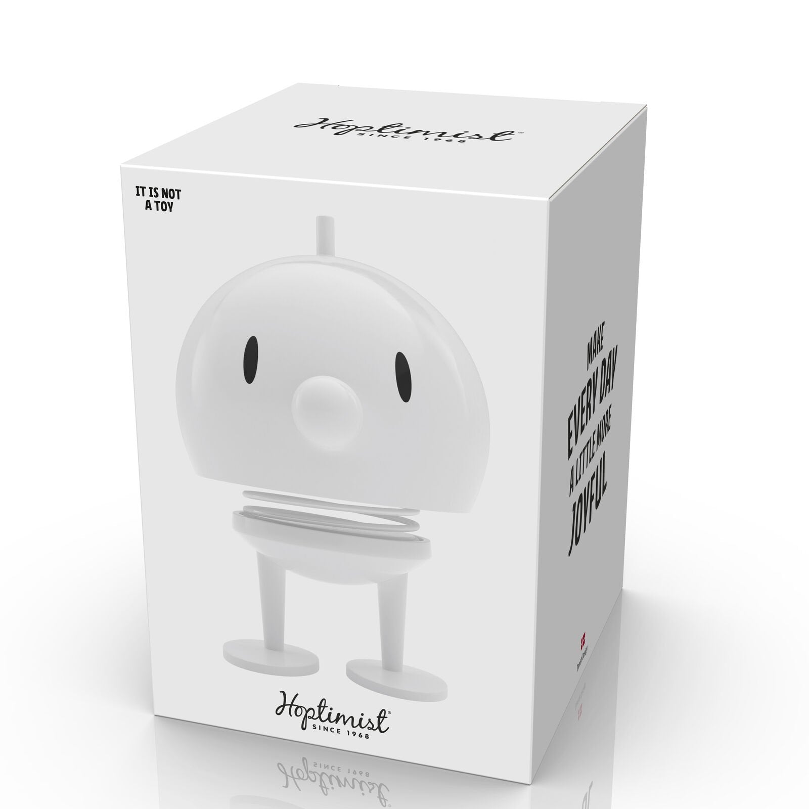 Der Hoptimist Bumble M in Weiß bringt Leichtigkeit in dein Zuhause. Seine glänzende Oberfläche und das runde Design setzen klare Akzente auf jedem Tisch oder Regal. Er wippt bei jeder Berührung und erinnert dich daran, das Leben mit einem Lächeln zu sehen. Höhe: 15 cm. Durchmesser: 10 cm.