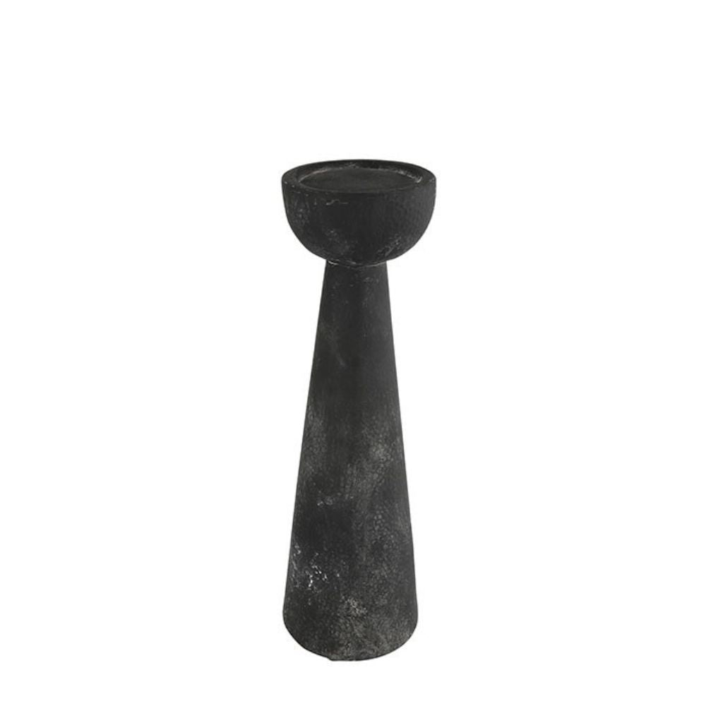 Mikela L steht fest und stolz. Mit 50 cm Höhe wird dieser Kerzenhalter zum ruhigen Mittelpunkt im Raum. Der schwarze Look, die raue Oberfläche und die klare Form geben ihm Charakter. Aus Steinzeug gefertigt, wirkt er massiv und bodenständig. Setz ihn solo in Szene oder kombiniere ihn mit den kleineren Größen. Für Stumpenkerzen, die Raum und Stimmung verändern.
