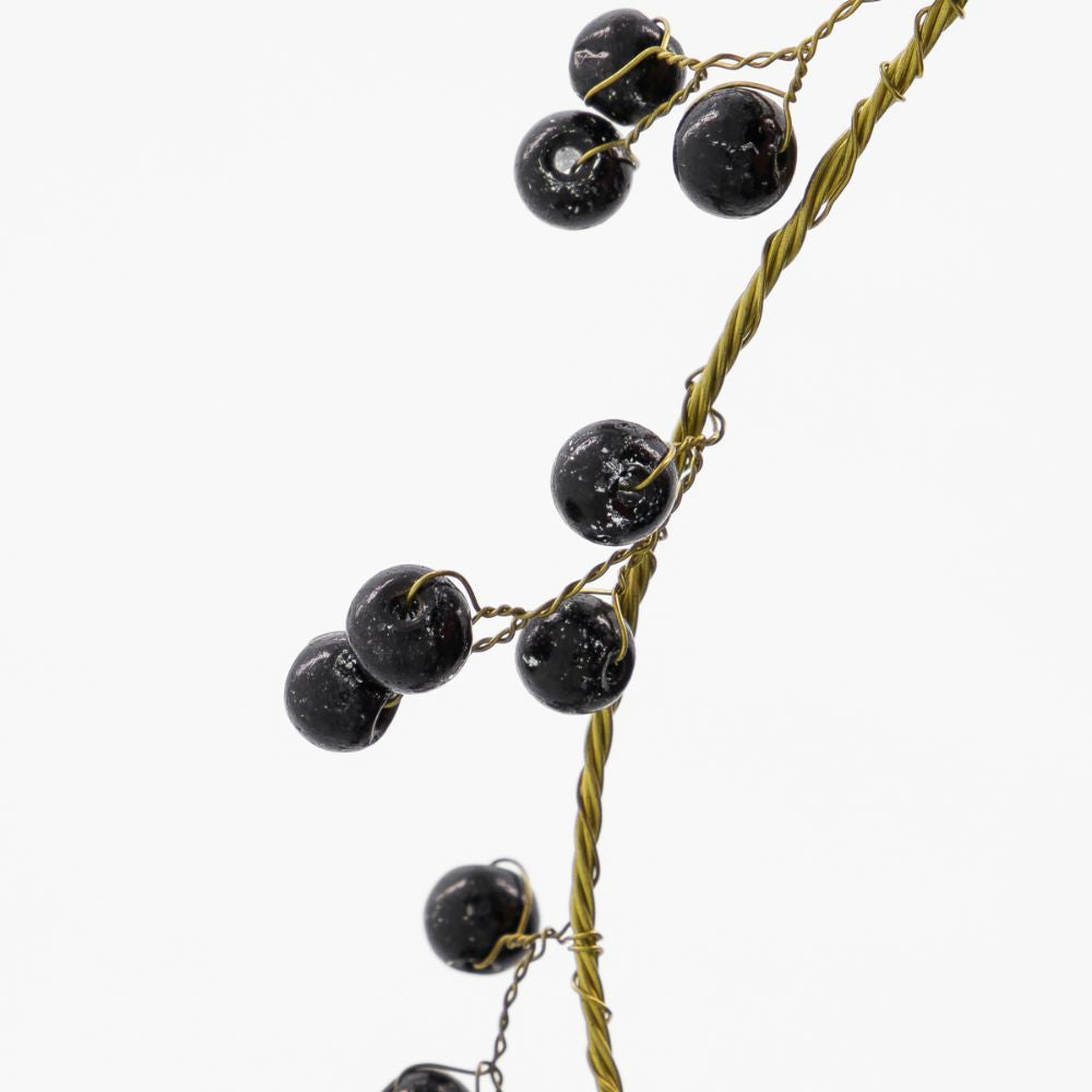 Drei goldene Metallvögel hängen an einem feinen Drahtkranz, der mit schwarzen Beeren geschmückt ist. Das Design wirkt leicht, nordisch und modern.