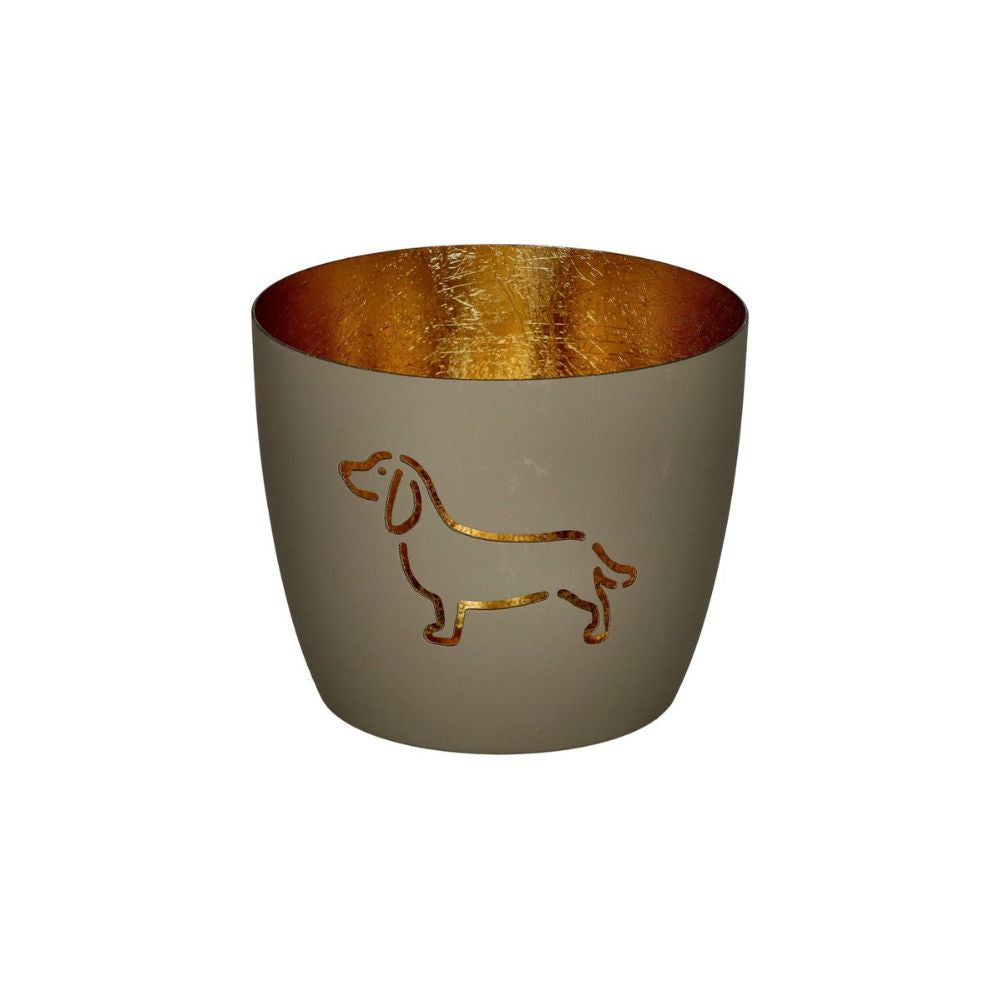 Dieses Windlicht bringt warmes Kerzenlicht in dein Zuhause. Die Innenfläche reflektiert das Licht ruhig und weich. Der ausgeschnittene Dackel wirft ein kleines Schattenbild. Du stellst es auf den Tisch, ins Regal oder auf die Fensterbank.