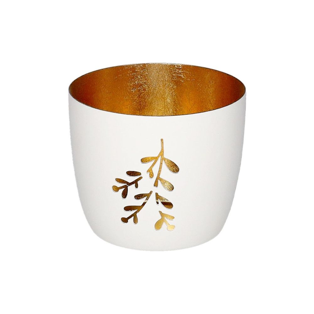 Das Madras Windlicht mit Tannenzweigen-Motiv bringt natürliche Eleganz in deine Weihnachtsdeko. Außen in klassischem Weiß und innen goldfarben beschichtet, sorgt es für warme Lichtreflexe. Durch die ausgestanzten Zweige schimmert das Kerzenlicht besonders schön und schafft eine gemütliche Atmosphäre in der Adventszeit.