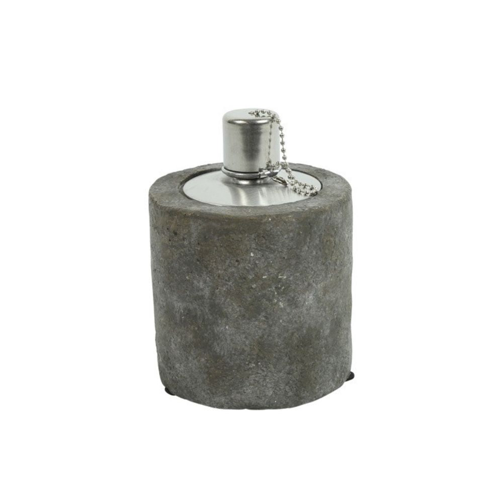 Der Ölbrenner „Dorian“ verbindet raues Material mit puristischem Design. Der Körper besteht aus grauem Beton, oben sitzt ein Einsatz aus Edelstahl mit Löschkappe und kleiner Kugelkette. Robust, schlicht und ideal für den Außenbereich – auf dem Tisch, der Terrasse oder zwischen Pflanzen.