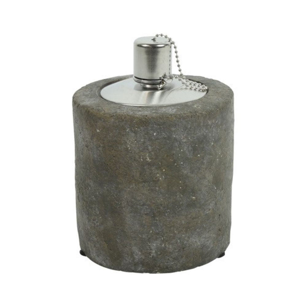 Mit Lampenöl gefüllt sorgt der Brenner für warmes Licht im Garten, auf der Terrasse oder auf dem Balkon. Der Beton gibt Stabilität, Edelstahl macht ihn langlebig und pflegeleicht.