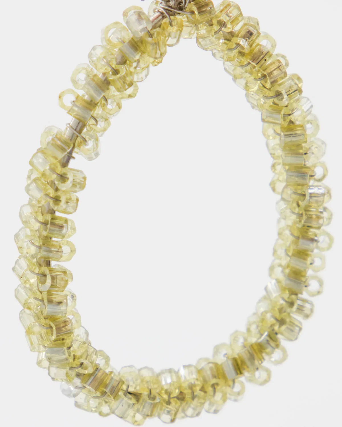 Die Eierform ist klar. Die Oberfläche besteht aus kleinen Perlen. Der Farbton Champagner wirkt warm und zurückhaltend. Das Licht bricht sich weich in der Struktur.