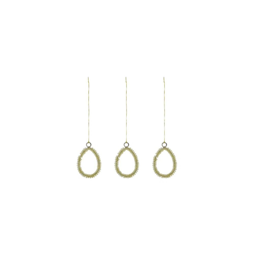Das Set besteht aus drei Eiern. Jedes Ei ist leicht gearbeitet und einfach aufzuhängen. Eine feine Ergänzung für deine Osterzeit.