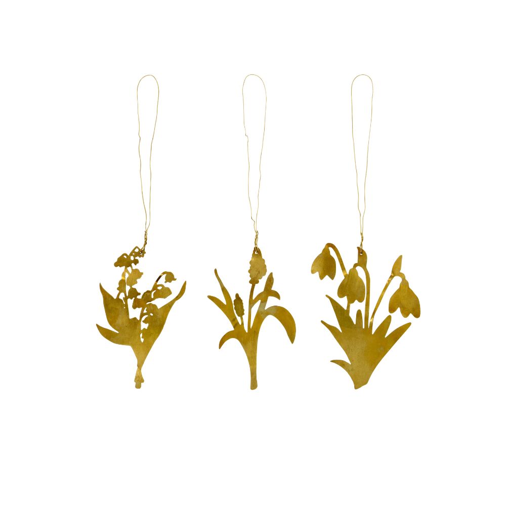 Die Formen zeigen zarte Blumen und Blätter. Die Oberfläche ist antik gehalten und schimmert warm. Jedes Teil wirkt bewusst schlicht und fein gearbeitet.