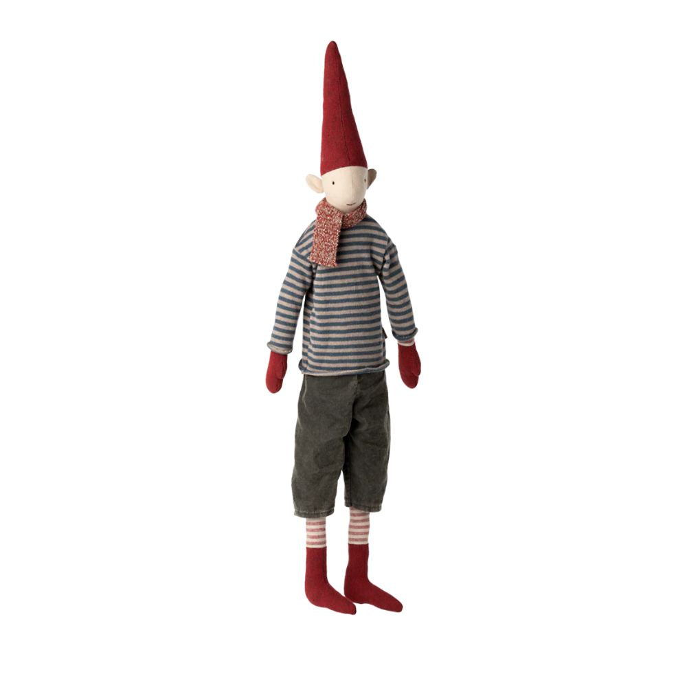 Der Maileg Pixy Size 4 Junge ist mit einer Größe von etwa 61 cm ein echter Blickfang in der Weihnachtsdekoration. Er trägt festliche Kleidung im typischen Maileg Stil und überzeugt durch hochwertige Verarbeitung aus Baumwolle mit weicher Polyesterfüllung. Ob als große Figur im Wohnzimmer, am Kamin oder neben dem Weihnachtsbaum, dieser Pixy Junge bringt skandinavische Gemütlichkeit und eine warme Atmosphäre in dein Zuhause. Er eignet sich ideal als Geschenkidee, für Sammler oder als dekoratives Highlight in der Adventszeit. Gemeinsam mit den anderen Pixy Figuren entsteht eine stimmige Weihnachtswelt, die jedes Jahr aufs Neue Freude bereitet.