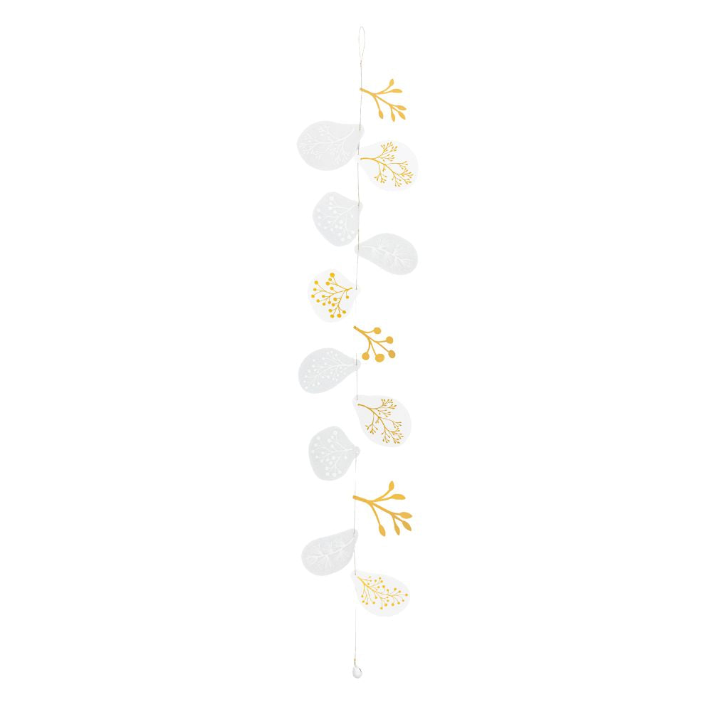 Zart wie Schneeflocken und voller Winterpoesie – die Räder Papierkette Winterzauber lang bringt Leichtigkeit und Glanz in dein Zuhause. Feine Papierblätter in Weiß und Gold, liebevoll mit winterlichen Zweigen verziert, schwingen sanft im Licht und schaffen eine festliche, ruhige Atmosphäre.