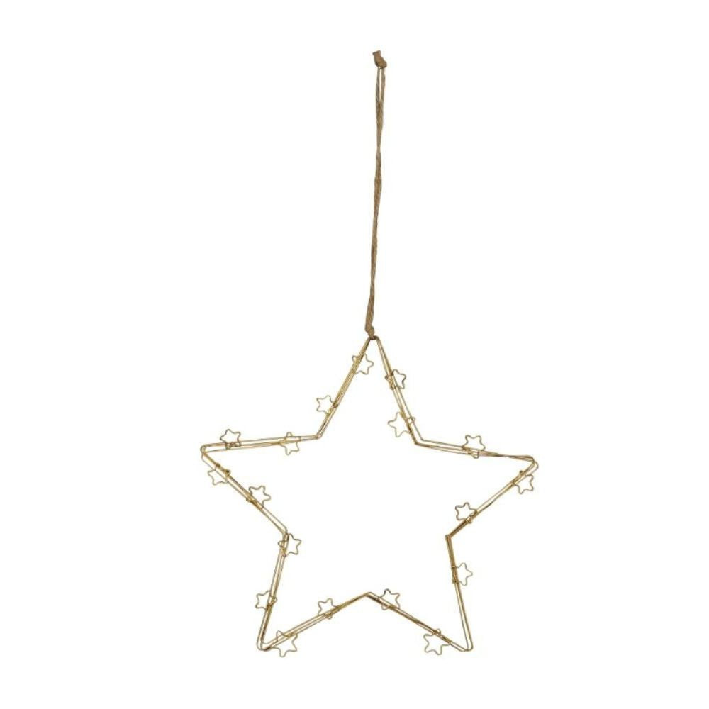 Zart, grafisch und dekorativ. Der goldene Metallstern mit feinen Stern-Details zieht alle Blicke auf sich. Er passt zu schlichter Weihnachtsdeko, harmoniert aber auch mit verspielten Elementen. Häng ihn ins Fenster, an eine Tür oder über den Tisch. Das filigrane Design bringt Leichtigkeit in deine Inszenierung.