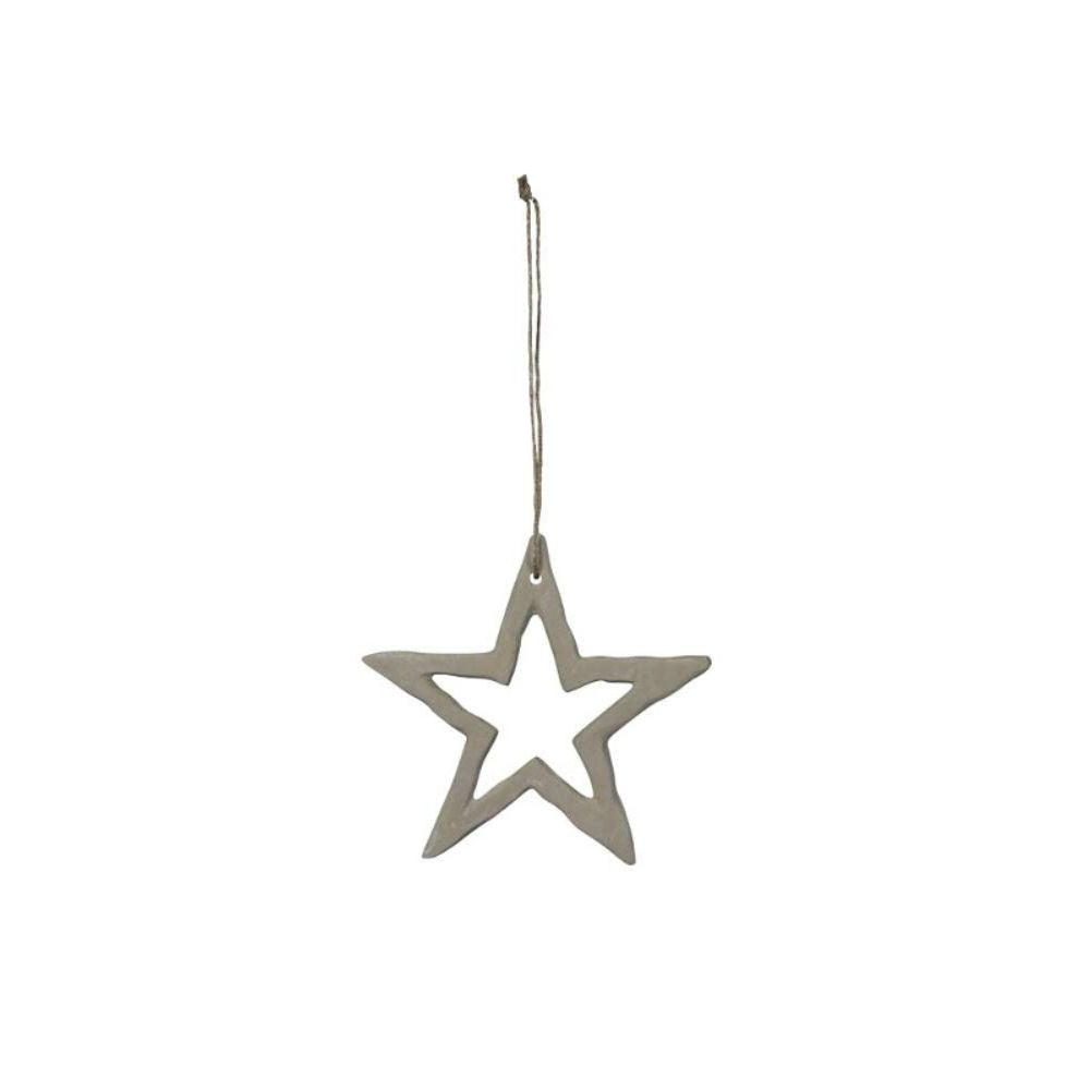 Dieser hell cremefarbene Metallstern zum Hängen bringt gemütlichen Charme in jeden Raum. Mit seinem schlichten Design eignet er sich perfekt als Deko für Fenster, Türen oder Wände und sorgt für eine entspannte Atmosphäre – egal ob drinnen oder draußen. Einfach aufhängen und fertig!