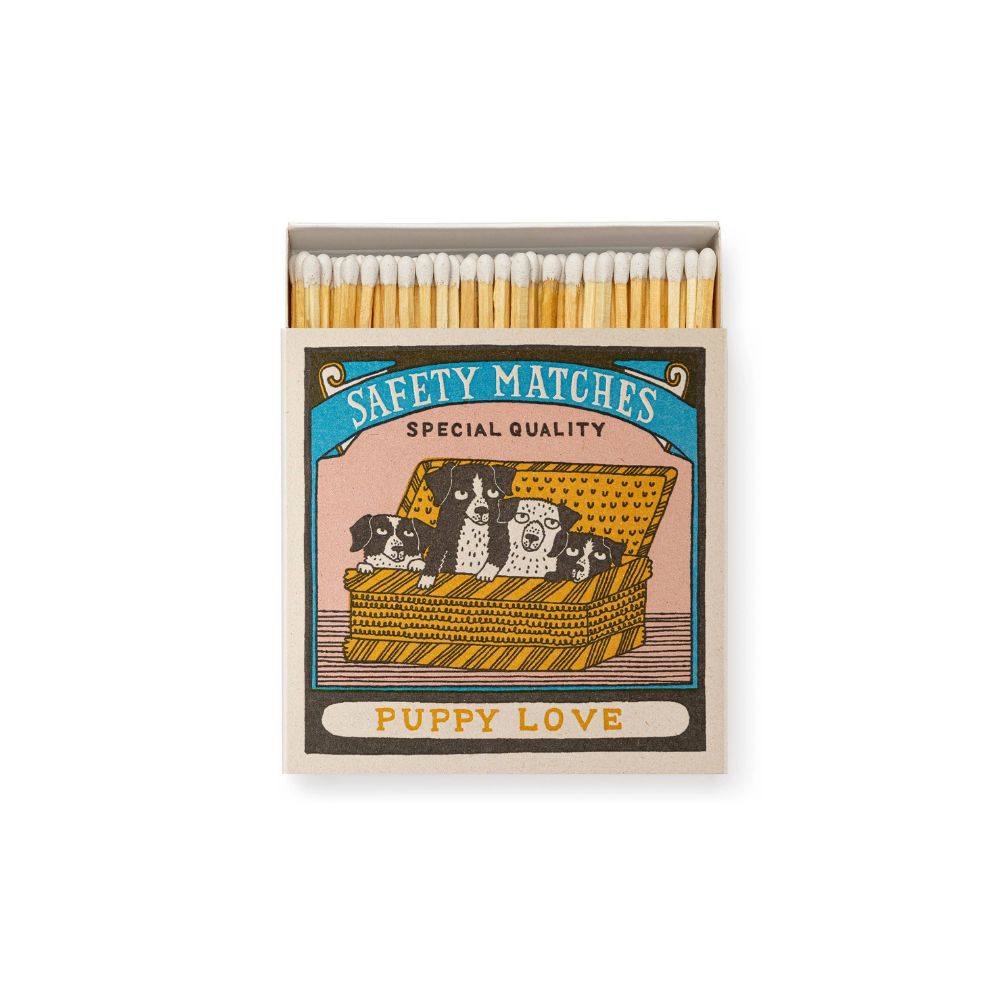 Diese Streichhölzer von Archivist Gallery kommen in einer gestalteten Box mit Hundemotiv. Die Farben wirken warm und freundlich. Du nutzt sie für Kerzen, Kamin oder Teelichter. Die Box darf sichtbar stehen, sie wirkt dekorativ und macht gute Laune. Auch schön als kleines Geschenk.