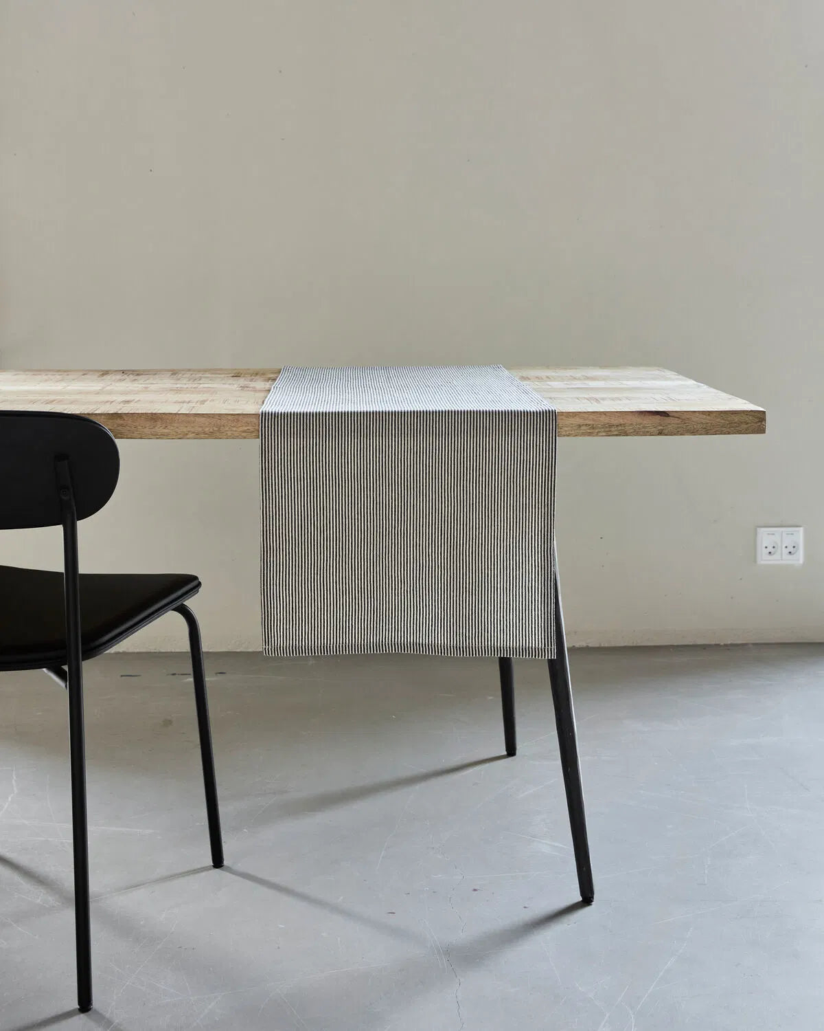 Mit dem Tischläufer House Doctor Block deckst du klar und ruhig ein. Die feinen Längsstreifen in Sand und Schwarz wirken reduziert und passen zu vielen Tischkonzepten. Der Stoff fühlt sich weich an und liegt glatt auf dem Tisch.