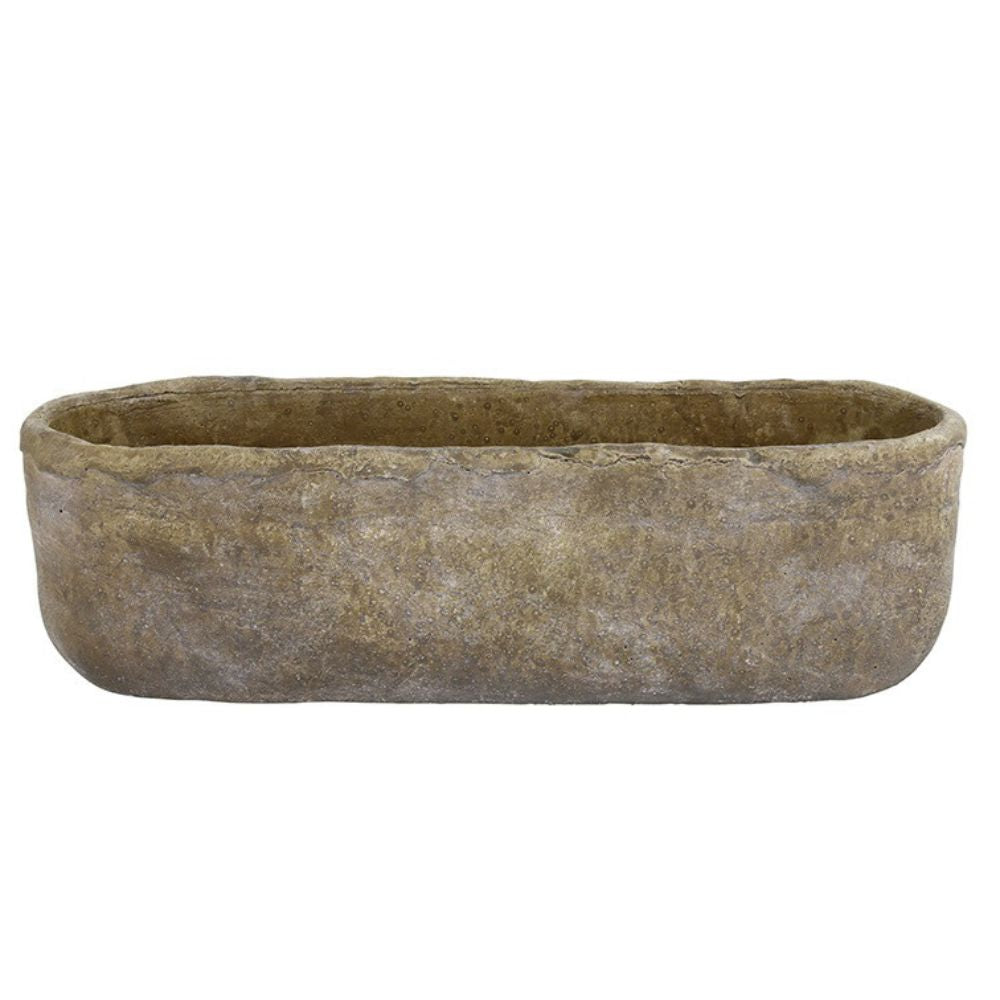 Dieser Übertopf hat eine weiche, organische Form in Steinoptik. Die Oberfläche wirkt natürlich und ruhig. Du stellst ihn auf den Tisch, auf die Fensterbank oder als längliches Arrangement in die Mitte deiner Dekoration. Er fügt sich leise und unaufdringlich ein.