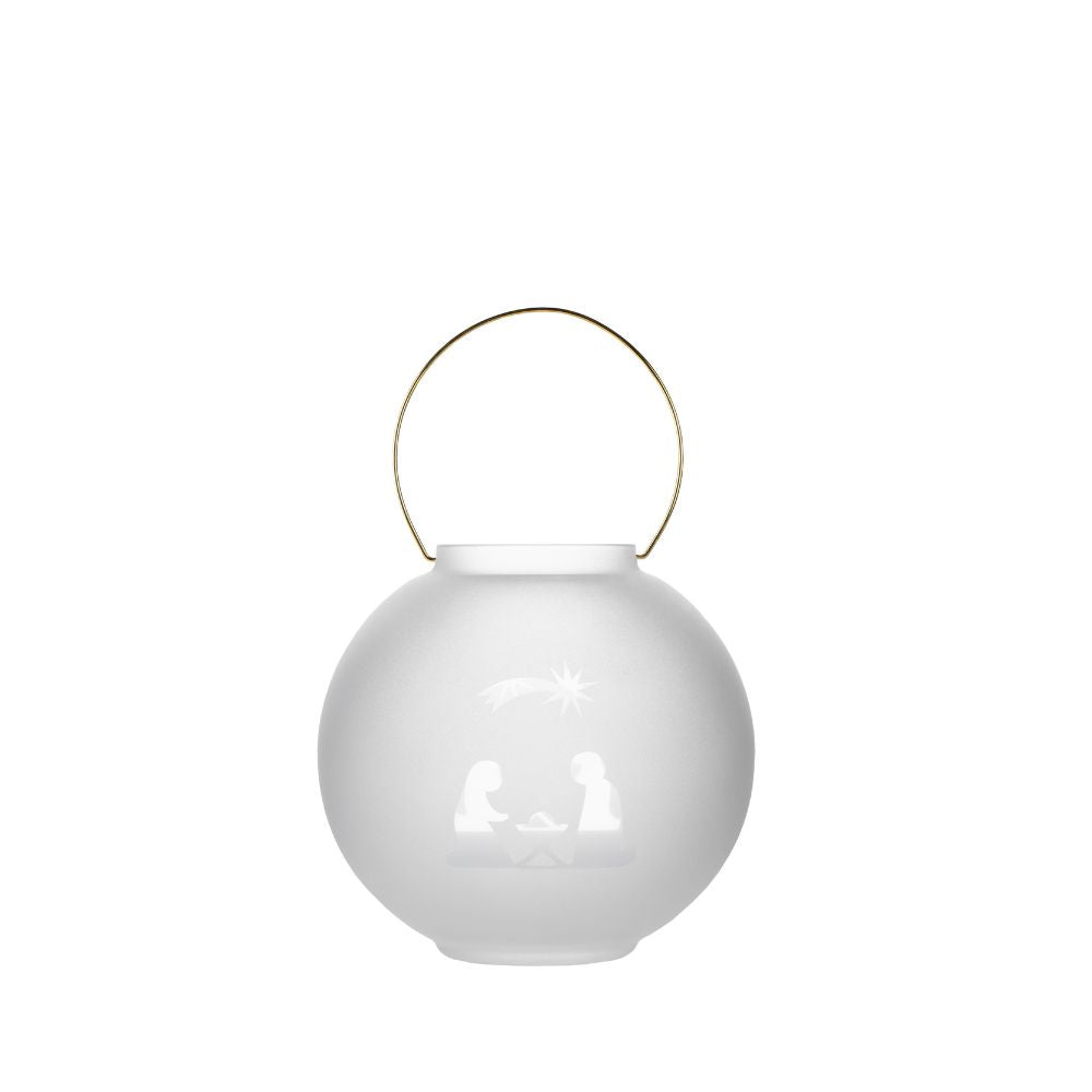 Dieses Glaswindlicht schafft eine stille, warme Atmosphäre. Du stellst eine Kerze hinein und das gefrostete Glas lässt das Motiv der Krippe weich aufleuchten. Die runde Form wirkt schlicht und modern. Der feine Henkel in Gold setzt einen kleinen Akzent. Du platzierst das Windlicht auf dem Tisch, auf dem Sideboard oder im Fenster. Als Geschenk in der Adventszeit passt es gut.