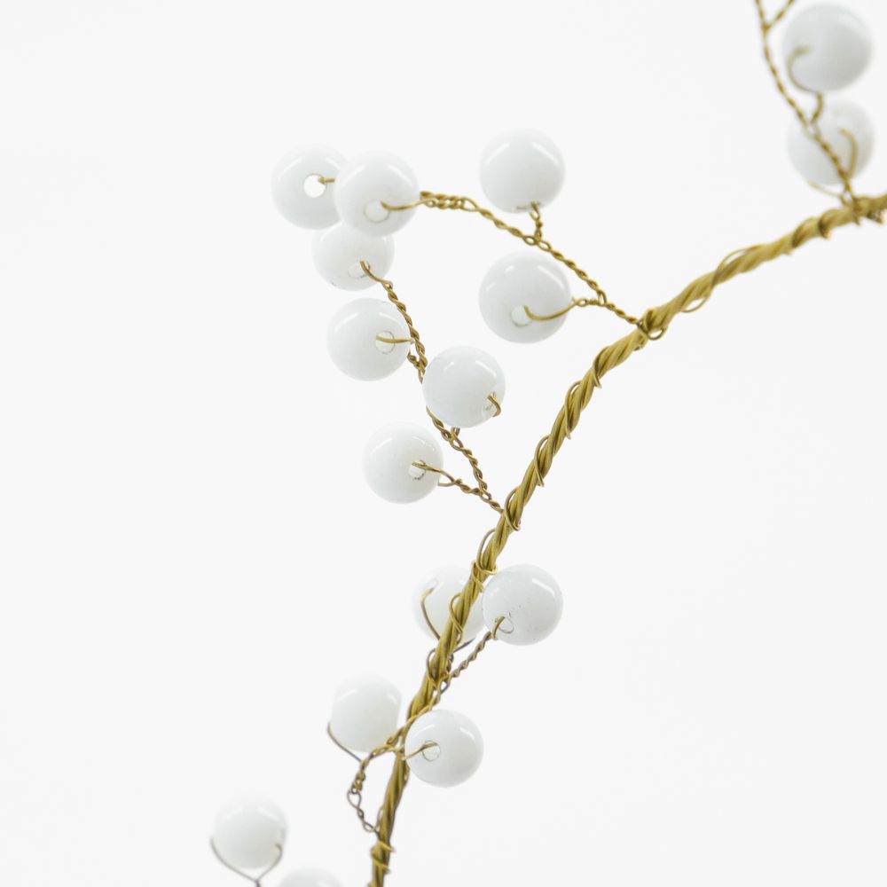 Drei goldene Sterne aus Metall hängen an einem filigranen Kranz, der mit kleinen weißen Beeren geschmückt ist. Das Design wirkt leicht, elegant und nordisch klar.